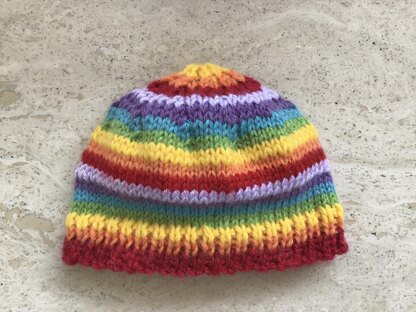 Quick And Easy Baby Rainbow Beanie - Made on Two Needles This Pattern Makes Four Sizes 0 to 3, 3 to 6, 6 to 12 months and 1 to 2 Years.