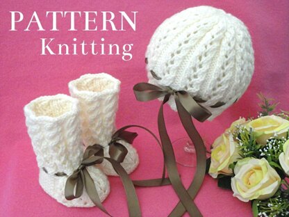 The Baby Hats and Booties are knitted on two needles