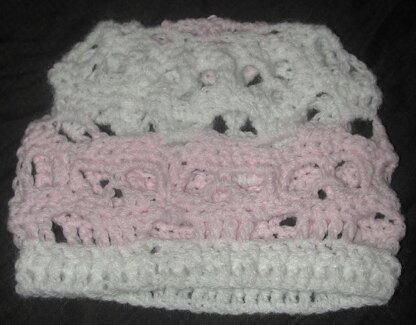 Tiny version of my popular creepy skulls hat. Pictures of almost every row Finished measurements 14 inches wide and 6 inches long...look for more baby creepy layette items to be published soon