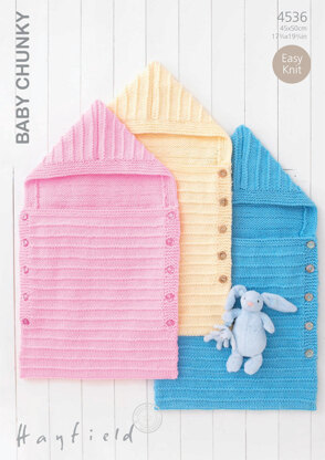 Baby Sleeping Bags in Hayfield Baby Chunky - 4536 - Downloadable PDF is a Knitting pattern by Hayfield, available as a Downloadable PDF and includes instructions in English. Super fun to make, this pattern could be your next masterpiece!