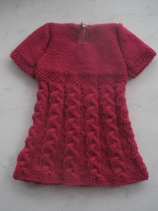 Baby Sofia is a pretty dress with cable plaits. Worked in the round to the armholes with a keyhole opening at the back to make for easy dressing.