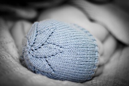 Hat with Lacey Patterned Star, worked from the top and casting off in rib. Knitted in 8ply/DK yarn with 4 mm (6 US) needles and has two versions, knitted flat on straight needles or on the round on double pointed needles.