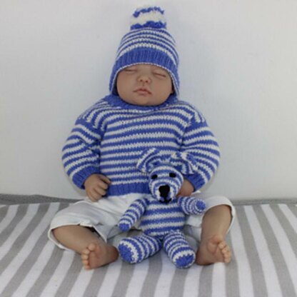 This is my Baby Stripe Sweater, Bobble Beanie Hat and Toy Teddy Bear knitting pattern. The knitting pattern provides full instructions for 4 sizes: XS (0-3months ), S (3-6 months), M (6-12 months), &L (12-18 months) and there are lots of step by step photos to help you throughout. All the items are worked flat in any dk yarn of your choice. My new grandson Gus looks great in this outfit even though his mum put the sweater on back to front! You can buy this madmonkeyknits knitting pattern here.