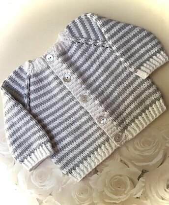 This is my pattern for a sweet little striped cardigan for baby. I think it's really cute over dressy clothes for special occasions, or with casual outfits. It's a nice light weight layering piece done in sport weight/4 ply yarn. I like to do it in cotton blends for warmer months and soft wool for cooler weather.