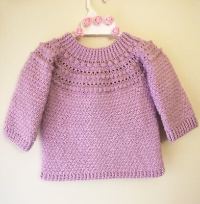 Crochet pattern for a baby/child sweater, perfect for that crochet gift. This Sweater is worked top-down. You start with the yoke, the collar is worked later, and you begin with the best part of the sweater: bobbles. The sweater is completely seamless.