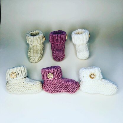 Knit these super cute traditional baby booties. Quick and easy to knit up. Suitable for a beginner knitter who knows the basic knitting stitches and also suitable for the more experienced knitters. Easy to follow, row-by-row knitting pattern. These booties are knitted flat and seamed afterwards. Sizes: newborn-3 months & 3-6 months. These booties will keep babies footies warm and cosy, while the deep ankle cuff make them comfortable for baby to wear and keep the booties in place. Knitted in DK/8 ply yarn on 3.25 mm (US 3) & 3.75 mm knitting needles. Matching bonnet pattern available in my shop