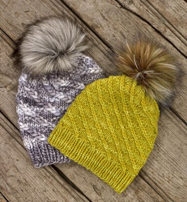 Pattern includes two sets of instructions for knitting the Backroads Beanie in two choices of yarn weights: Super Chunky (Manos del Uruguay Franca) or Worsted (Manos del Uruguay Maxima).