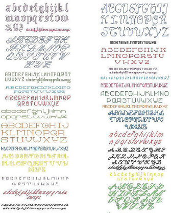 Designed by: Kooler Design Studio. Lettering is fun to Cross Stitch. The perfect small and delicate back stitched alphabet in cursive, sans serif and so much more is right here. Find just the right alphabet for every item and every occasion. With this indispensable collection in your library, it'll be as easy as A-B-C! There are 25 decorative alphabets to embellish clothing, hand towels, samplers, and more. Write on!