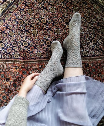The lace pattern of these socks is the little sister to the lace pattern from my most popular pattern, the Poet sweater. I first worked a pair of socks in the original Poet lace pattern and while I was knitting them I started to think about a similar pattern but with a smaller scale so that I could fit more pattern repeats on a sock. That's how the Ballad socks were born.