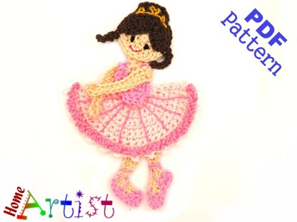 The Ballerina measures about 6 in. in height by 3 1/2 in. wide but the size can be varied by using thinner or thicker yarn and types of hook. Colors can be changed according to your personal preference. The pattern is designed for worsted weight yarn and uses American English crochet terms.