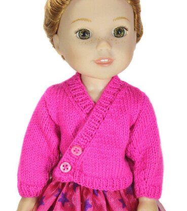 You can knit an adorable ballet sweater for your 14.5 inch doll with this PDF pattern. This pattern also includes instructions for ballet booties! Your doll will be ready to dance with sweaters made from this doll knitting pattern. This is a loose fitting sweater for easy movement. It closes in the front with buttons in a wrap sweater style.