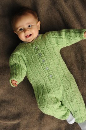 Eavesdrop on a Scottish nursery and you may hear the word “baloo" being whispered to lull babies to sleep. An easy overall cable pattern adorns this one-piece baby suit that’ll be so comfy for your little one, he’ll be off to sleep in no time, as if you soothed him with “baloo." The “cable" stitch pattern is formed by twisted stitches that may be worked without a cable needle for smooth, uninterrupted knitting. The onesie is worked flat and includes sizes for up to 12 months. (Sizes 3, 6, 12 mos; worsted weight yarn, 440 (660, 880) yds; US size 6 (4 mm) needles—straight or circular)