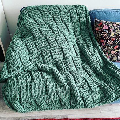 THIS IS A LOOP YARN FINGER-KNITTING PATTERN. The Bamboo Geometric Blanket Pattern combines knit and purl stitches to make an attractive geometric design reminiscent of bamboo.