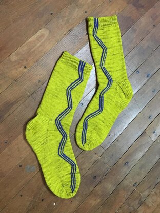 Sample pair knit in Knitted Wit Victory Sock in Golden Delicious and some leftover Cascade Heritage Sock.
