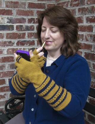 Pattern Details:Yarn: Knit Picks Capretta (80% Fine Merino; 10% Cashmere; 10% Nylon 230 yards/50g), 1 skein mc (Tumeric in sample) and 1 skein cc (Admiral in sample). Gauge: 28 stitches = 4” (10 cm) in stockinette Needles: US Size 4 (3.50 mm) dpns or 2 circular needles or in size necessary for gauge. Notions: Tapestry needle, 3 stitch markers and a stitch holder or waste yarn. Finished Sizes: Women’s S(M, L) 6 ¾ (7 ¼, 8)” 17(18.4, 20.3)cm hand circumference.
