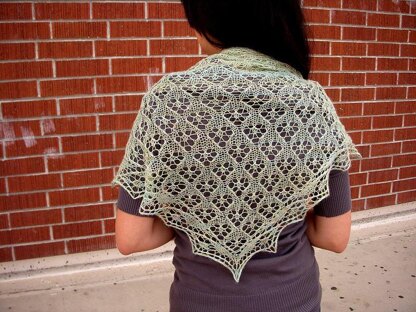 Bǎoshí means "precious stone" in Chinese, a fitting name for the diamond-like lace pattern. This shawl is worked from the bottom up and the lace edging is worked as you go, making it easily customizable to any size you prefer.