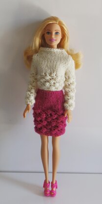 Elegant and modern barbie look that kids adore. The pattern has row by row written instructions so it is suitable for advanced beginners. The pattern includes instructions for two pieces: skirt and sweater. There is only one size available is to fit a standard barbie doll. There is a given gauge for best fit, but a variation of the gauge with +1 or -1 sts/row can work well too. You can use any yarn with the given weight and gauge. For any questions feel free to mail me. Happy knitting!!!