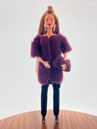 Sized to fit Petite, Original, Curvy, Tall, and Model Muse Barbie dolls. May also fit other 11-12 inch, 1:6 scale, fashion dolls. Genuine Original, Model Muse, and Curvy Barbie dolls used in photos. Tension for best fit: 22 stitches/32 rows = 10cm/4 inches square in Stocking Stitch using 3.25mm (US 3) needles.
