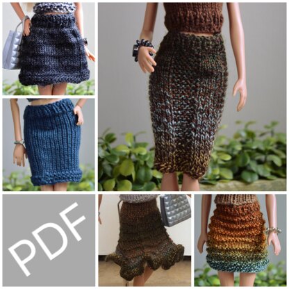 This is a set of 5 essential Skirts knitting patterns for Barbie.