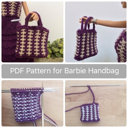 This knitting pattern is for an Oversized handbag for dolls such as Barbie.