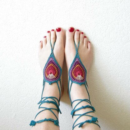 Measurements: Peacock Motif Size: width approx. 7.5 cm / 3 inch and length approx. 9.5 cm / 3.8 inch. Ankle Strap Length: 46 cm / 18.4 inch (but you can of course make them as long as you need them to be)