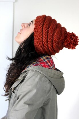 Knit up a chunky beanie and learn how to welt at the same time with this easy design! The decreasing is uneven for a rustic look, and a fluffy little pompom tops off this adorable hat for extra cuteness.