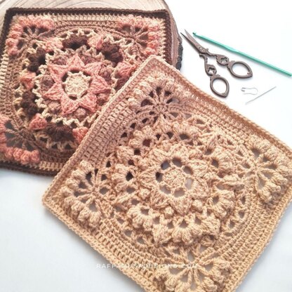 The Baroque Triumph Floral Square is a 10" square that is perfect for making blankets, pillowcases, and any other creations using afghan blocks.