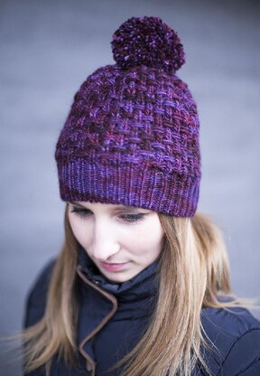 “Basia” is a simple beanie style hat with allover texture and a big pompom.