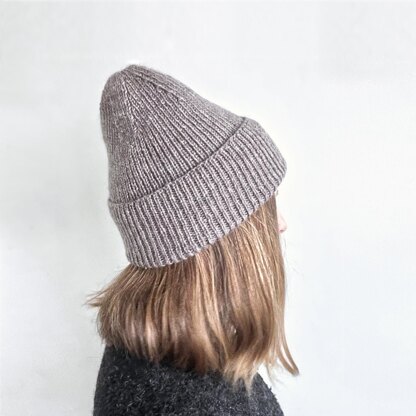 This pattern INCLUDES instructions for four different yarn weights: sport, dk, worsted and bulky. Knit entirely in single rib, this beanie fits snugly with a bit of height at the crown for a structured silhouette. Strategically-placed decreases and a wide, turned-up brim keep the look current. Sizes S, M, L