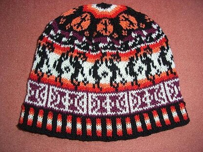 I love to make sports patterns. And this one is a really bright one! :) This time it's a basketball beanie! It has a multicolor ribbing in light and dark orange, off-white and black. Then comes the basketfield and two players in the air. One tries to throw the ball over the others head into the basket. The other one is in the defence. The players are followed by basketball shoes and at the top there are basketballs and a stripe circle.