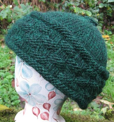 The basketweave pattern on the cuff of this cap helps trap the heat and keep the wearer warm throughout the wildest winter weather. Cap is worked top down, beginning with an I-cord "button". Cuff is worked from the wrongside, then turned up after completion.