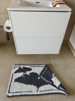 My cousin renovated her bathroom and asked for a small bath mat with a ginkgo pattern in white and grey. The mat should be thick and absorbent. For this, I used the Double Knitting Technique and a cotton ribbon yarn. Despite the doubled number of stitches because of the two usable sides, this can be knitted fairly quickly using a no. 8 needle. Since I ordered too much wool, I varied the pattern and knitted a second mat. Which one do you like better?