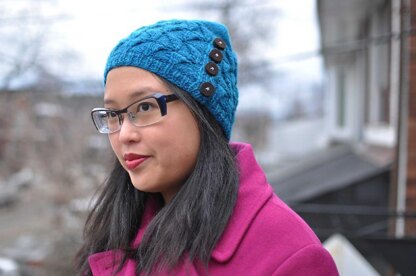 Bathurst is a soft and slightly slouchy hat with a simple and interesting stitch pattern. Yarn over increases create right- angled triangles that are then pleated, creating a cushy and airy double layered fabric. The crown of the hat is worked in simple stockinette with a quickly gathered crown. The main body of the hat is worked flat, with ribbed edges and buttonholes, then joined into the round for the crown.