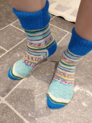 - You will need 1 x 100g ball in your main shade, and about 25g from a contrast colour for the cuff, heels and toes.