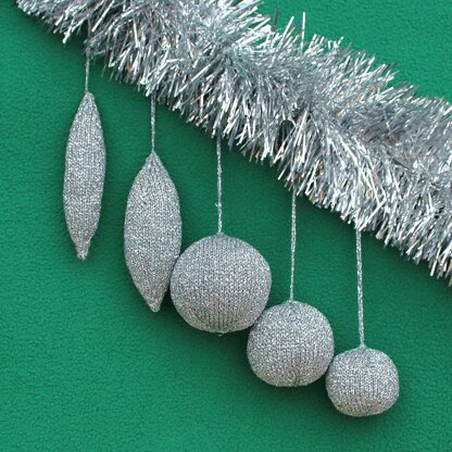 The baubles are knitted in the round and shaped with knitting increases and decreases.