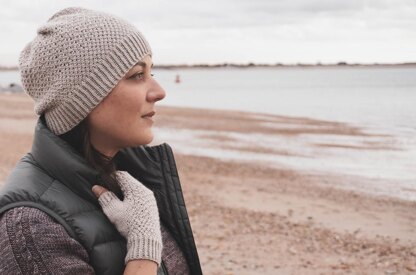 A simple cast off stitch gradually fades to stockinette to give all over texture. the textural detail is perfect for showcasing tonal and solid yarns like this one with added sparkle, whilst the fading sections can also be used to match with a set of gradient minis. Options include a folded or classic beanie brim.