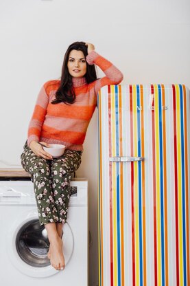 The perfect combination of texture and strong colours, this jumper uses clashing stripes and simple stitches to take advantage of the soft fluffy halo of the yarn, encouraging you to BE BOLD!