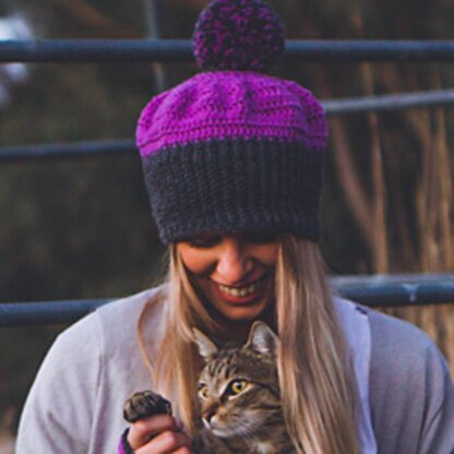 Requirements: Approx 150m of DK/8ply yarn An extra 20-50m of yarn for pompom, depending on the density and size you prefer Yarn needle Crochet Hook: 5.5mm (I) Gauge: 9 dc and 4 rows = 5cm (2”) square