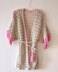 This garment is made up of 2 front panels and one back panel, sewn together. After assembly, sleeves with the fringe is added. Belt is made separately.