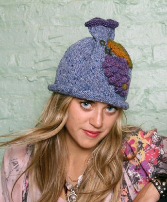 In This is an easy, quick cap to knit. For the background you can use one to two skeins of yarn left over from a sweater, and for the grapes you can use a small amount of any color yarn. Pin-mark where you want the top and bottom of the grapes to be, then start at the bottom with one grape. Use two grapes for the next level and then three grapes for the next level until you have formed a bunch of grapes. Then top it with a leaf or two. Voila! Beaujolais that will even improve with age.