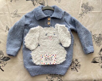 Our Becky design is a Baby and Child Knitting Pattern for a Jumper with a bunny worked in the knit and is available in two sizes 22" and 24" chest (approx 2-4 years).