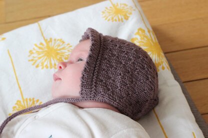 A sweet little baby bonnet, with nice details, to match the «Semis de Printemps» cardigan, and get the most precious set!