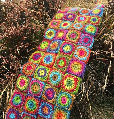 Belladonna was designed to showcase the stunning collection of colours dyed by The Little Grey Sheep and is snuggly colourful warm winter scarf