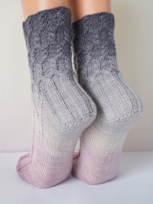 The pattern includes description for heel and toes, but you can also work the in your favourite pattern. The cable pattern is charted.