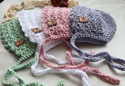 This is such a pretty bonnet for you to make. With its lacy effect detail and sweet little ties. The pattern has 3 sizes included. I have used Drops Muskat Yarn but any DK yarn will be suitable. It makes a great gift giving idea.