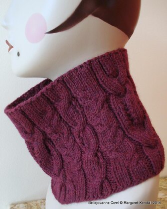 Alternating cables that incorporate a touch of lace add texture and dimension to the Bellejouanne Cowl. The cowl is worked from the bottom up and in-the-round. Bellejouanne Mitts and Tam pattterns are also available for purchase. Both written and charted instructions are included. Yarn: 140 - 190 yards (128 – 174 meters) Worsted weight if using wool or wool blends. DK weight if using alpaca or other animal fiber with less memory. Wool and wool blends will tend to have more memory and will spring back to shape. A luxury blend will have a softer drape and less memory, so a lighter weight is recommended.