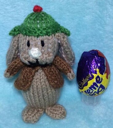 This cute Benjamin Bunny from Peter Rabbit inspired knitting pattern is for a chocolate cover. I have put a Creme Egg chocolate inside but any similar sweet could be used. This makes a stunning addition to your Easter table, a fantastic fund raising item for fayres and bazaar's or great as a novelty decoration or egg hunt.