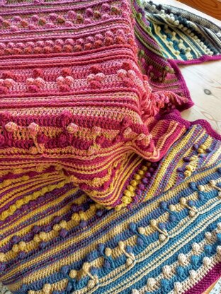 The Bernisha Wrap is a beautifully textured crochet project designed to be both engaging and enjoyable to make. Created with a balance of interest and rhythm, it offers just enough challenge to keep you inspired while still allowing you to relax into the stitches. This design explores the interplay between two gradient yarn cakes, enhanced with a contrasting solid shade to create depth and visual impact. Rich surface texture is achieved through rows of bobbles formed from clusters, adding both tactile interest and a satisfying weight to the finished wrap. Worked on a 3.50mm hook, the pattern uses two full gradient cakes alongside a contrasting colour. The wrap is easily customisable—simply add more pattern repeats to increase the size (additional yarn will be required). The pattern is written in English using UK crochet terminology.