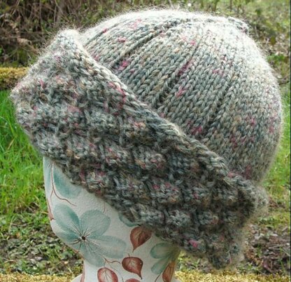 Depending on the yarn used, this can be a lightweight cap for changeable springtime wear or a warm hat for cold winter days. The lavender version used Crystal Palace Taos for the body of the hat and Crystal Palace Merino Frappe for the lace cuff and only weighs 55 grams. The green version used one strand each Brown Sheep Lamb’s Pride Superwash and Crystal Palace Kid Merino and weighs 101 grams. It is much sturdier, so the berries really stand out.