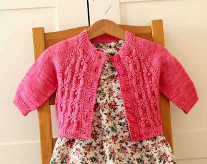 Berry Pretty Baby Cardigan is worked flat on a circular needle from the top down, this pretty baby cardigan features little nupps and dancing cables design in fronts and stocking stitch in back and sleeves, yoke is shaped with raglan increases in a special design to create lovely lacy look for the little ones, sleeves are worked after the body, using magic loop technique or if you prefer can use DPNs needles.